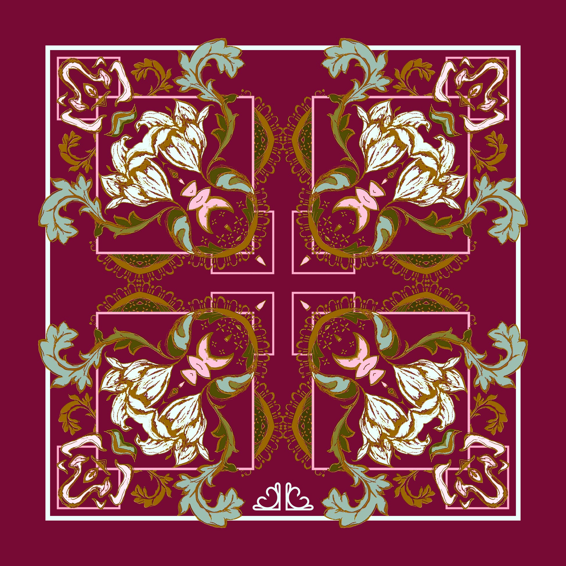 Fashioned from pure silk, this hand designed and finished large pocket square was inspired by classic baroque and filigree design.