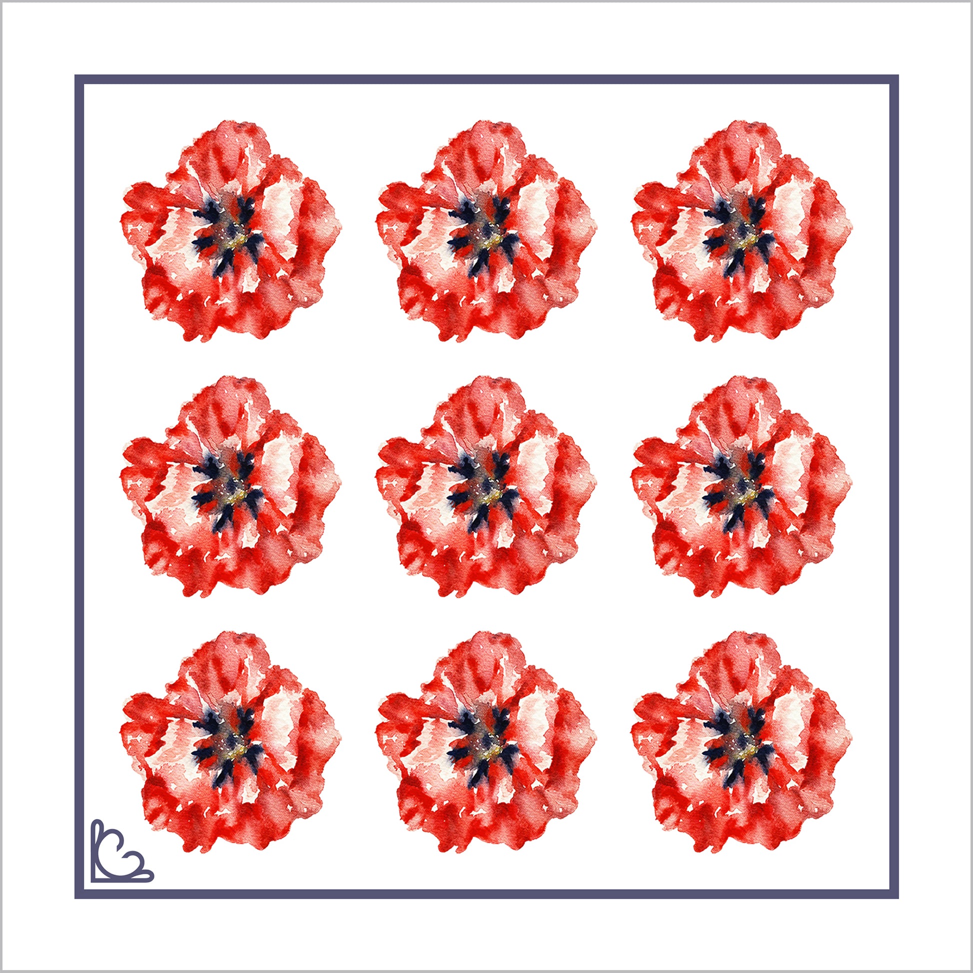 Fashioned from pure silk, this hand designed and finished silk pocket square is to recognise and remember those who have fallen, and those who continue to defend our country.Using a poppy from life, Lauren has used watercolours to denote the delicacy of the poppy's form, producing a more impressionist replication of such an iconic flower.
