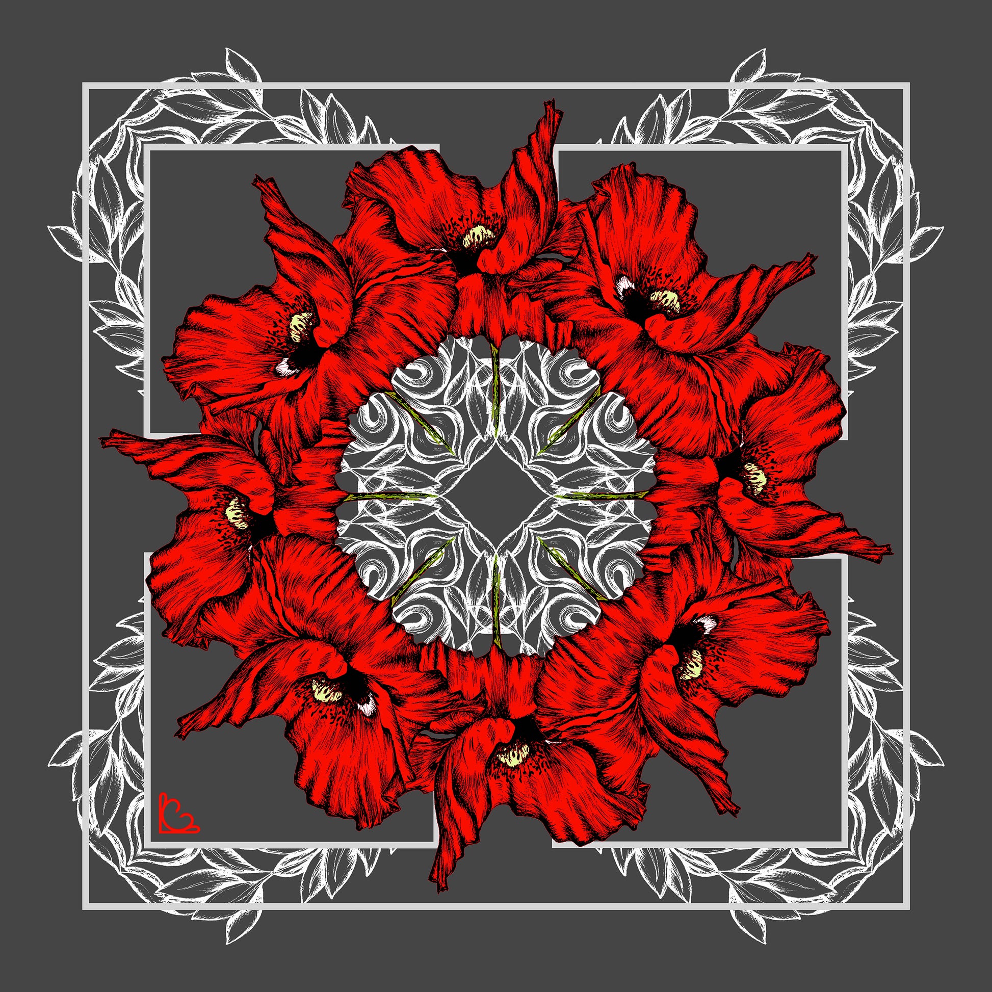 Fashioned from pure silk, this hand designed and finished silk pocket square is to recognise and remember those who have fallen, and those who continue to defend our country.Using a poppy for the focal point of the design, Lauren has also used aspects of veterans medals, such as the Queen's crown, to draw from. This has not only resulted in an intricate and ornate looking aesthetic, but also a more symbolic memorabilia due to the formation of a poppy wreath, and the discrete connection to the veterans themselves.
