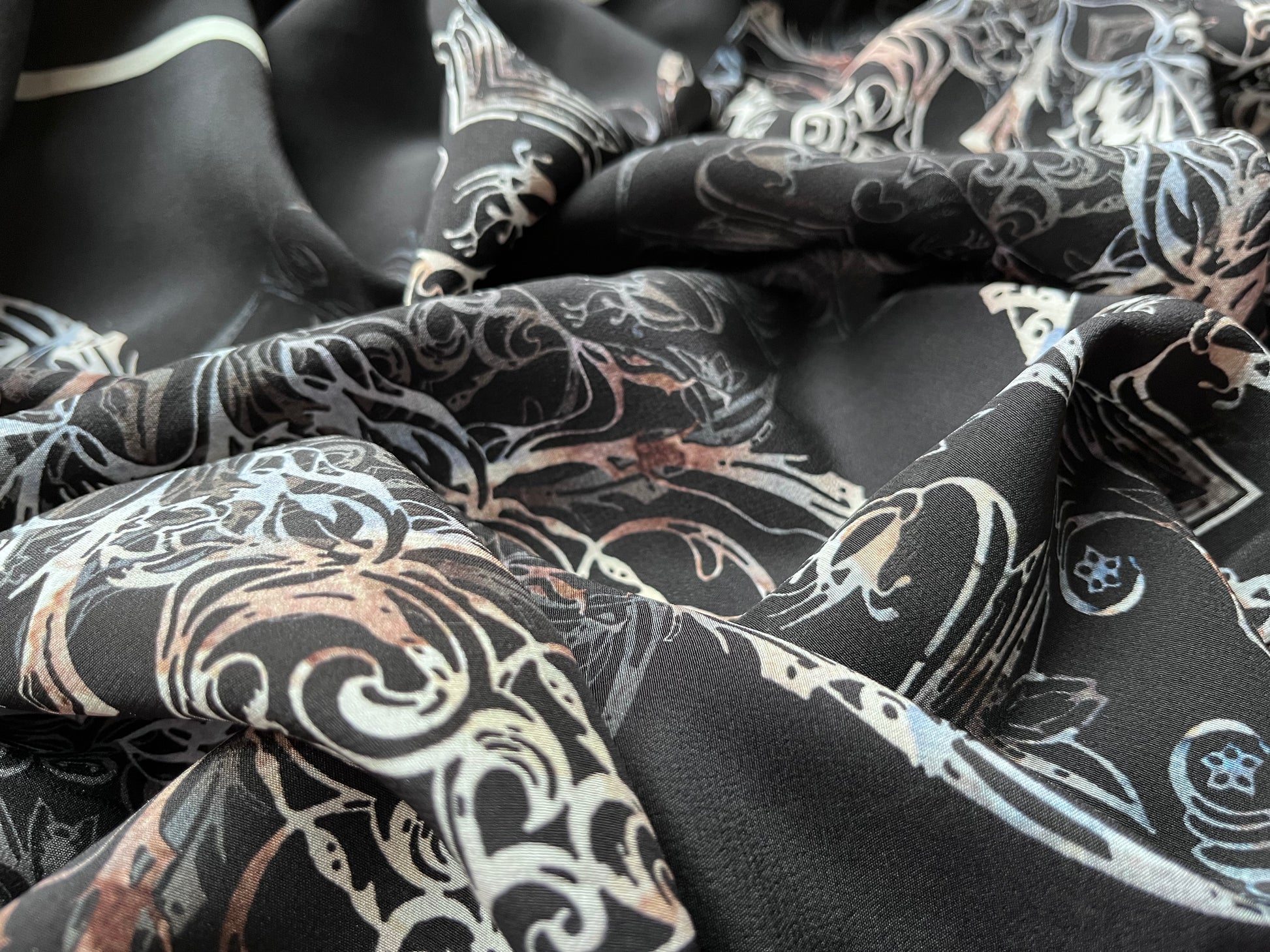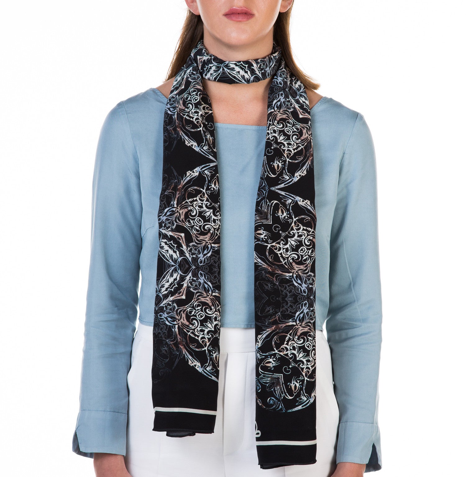 The elaborate and ornate design makes for a bold statement, but its colours allow it to be very wearable. For you black and grey lovers, let this accessory extend that classic understated look.