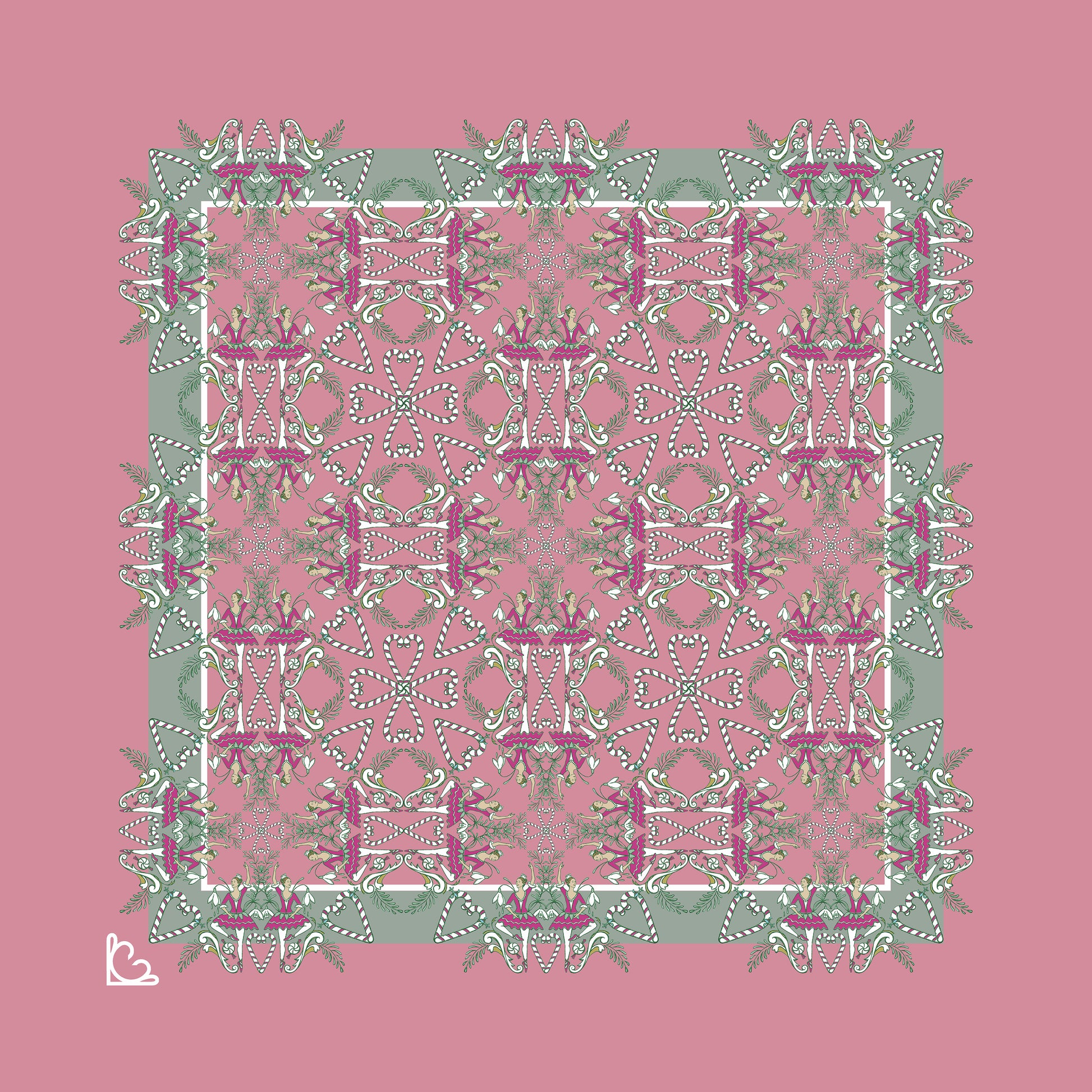 The warm dusty pink, and wintery sage green make for an alternative Christmas colour way. It'll be a conversation starter, making it the perfect statement for your festive celebrations. Forever.Due to the nature of the silk, this pocket square is perfect for both structured and relaxed folds.