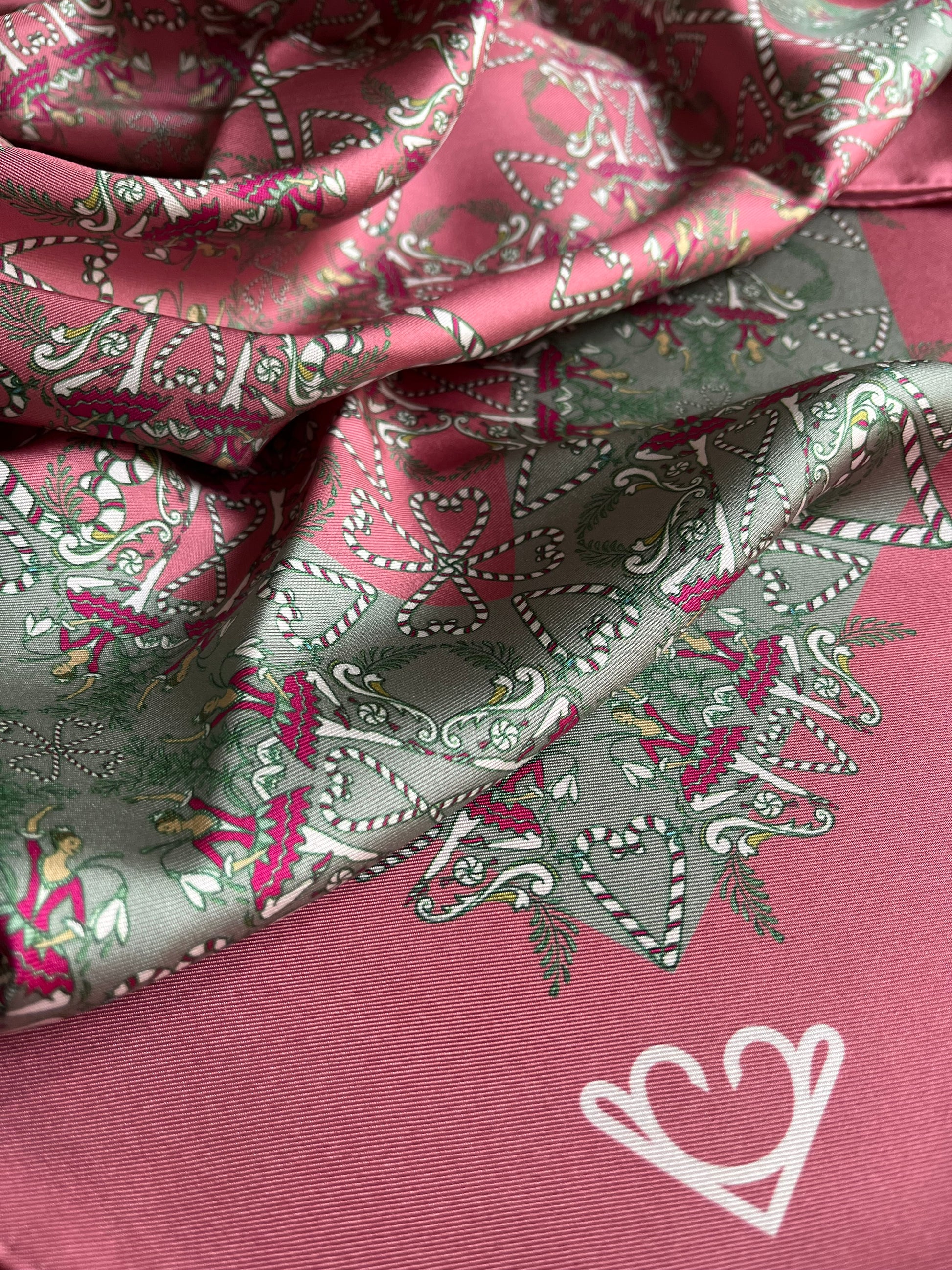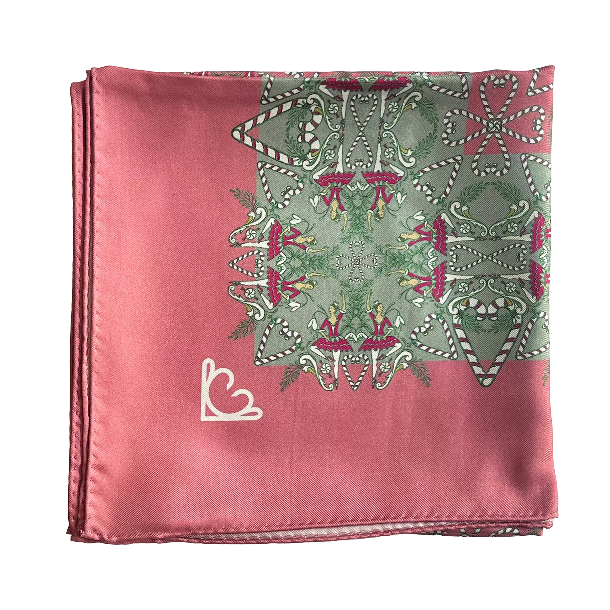 The warm dusty pink, and wintery sage green make for an alternative Christmas colour way. It'll be a conversation starter, making it the perfect statement for your festive celebrations. Forever.Due to the nature of the silk, this pocket square is perfect for both structured and relaxed folds.